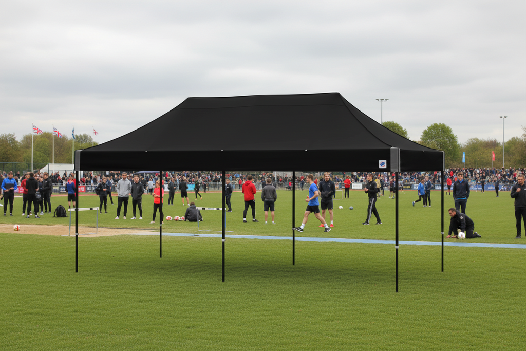 - Professional-grade fabric canopy top – weather-resistant and built for repeated professional use, included with folding frame and carry bag